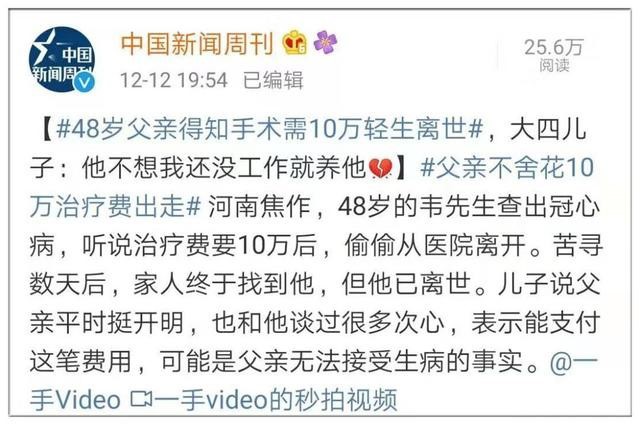 據(jù)媒體報(bào)道,河南焦作48歲男子韋某某,在外打工十幾年,感覺(jué)身體不適回焦作的醫(yī)院檢查,查出有冠心病。韋某某聽(tīng)說(shuō)要花費(fèi)10萬(wàn)元左右的治療費(fèi),害怕花錢(qián)拖累家人,借故支開(kāi)親人,從焦作人民醫(yī)院出走,家人發(fā)現(xiàn)后四處尋找。